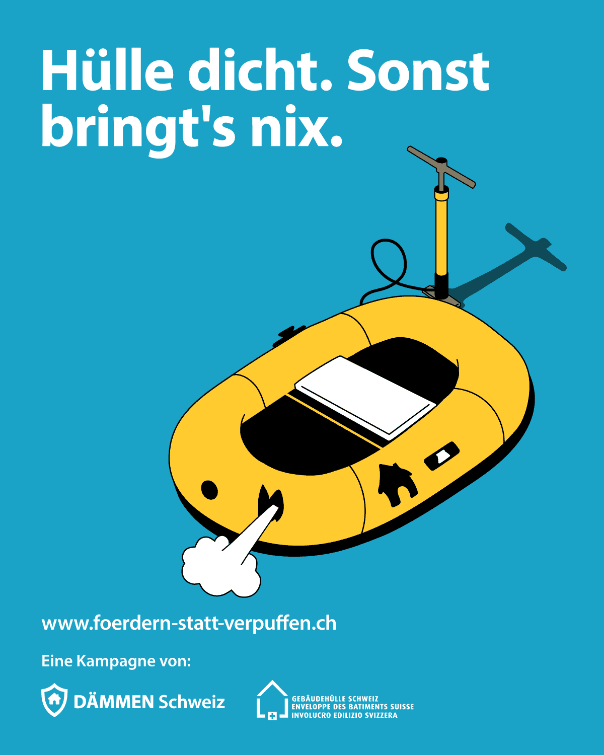 Visuell setzt die Kampagne auf prägnante, leicht verständliche Metaphern, die das Thema mit einem Augenzwinkern inszenieren. So etwa das animierte Inserat mit einem Gummiboot, das ein Leck hat und sich trotz kräftigem Aufpumpen nicht füllen lässt – eine pointierte Visualisierung des Claims «Fördern statt verpuffen».