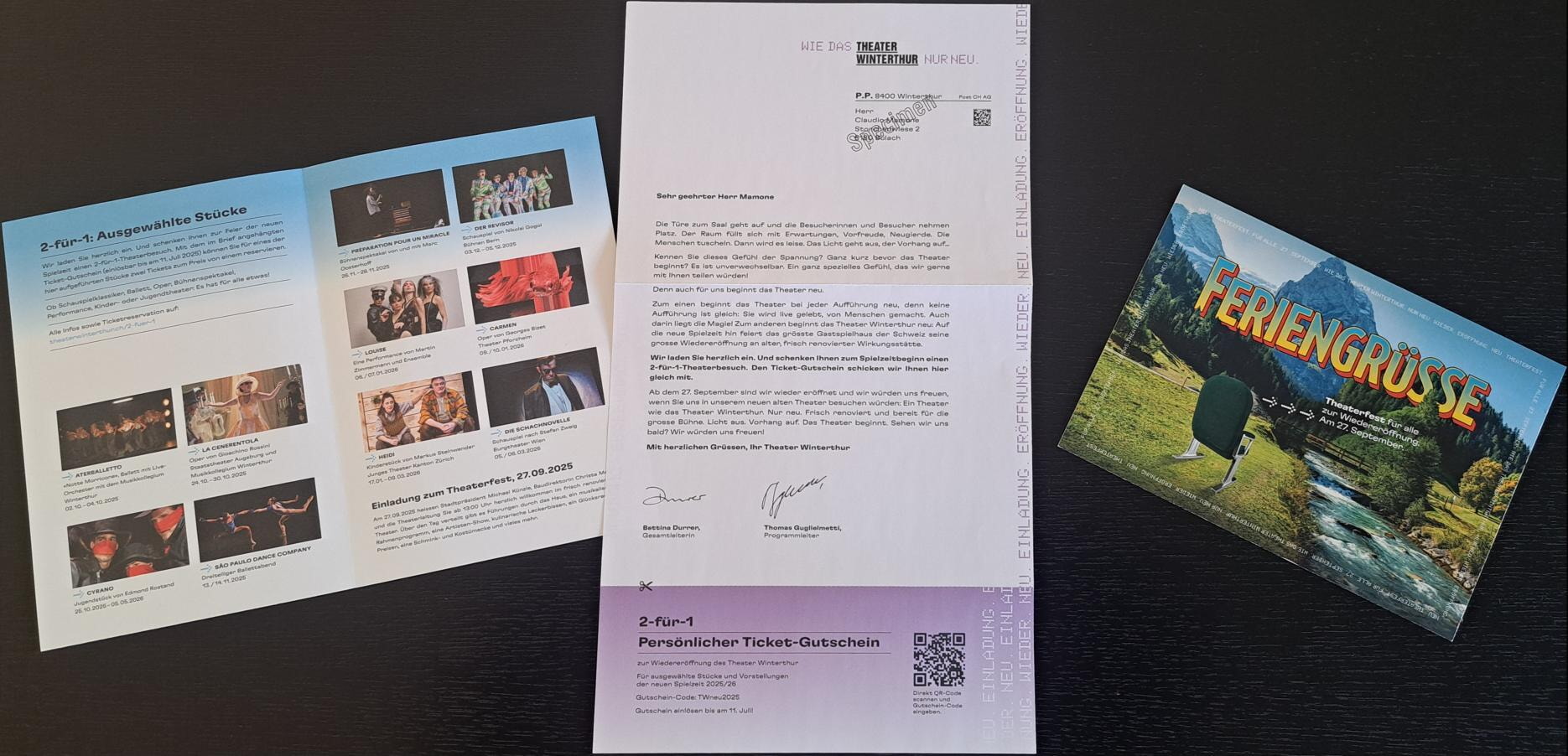 Gemeinsam entwickelten das Theater Winterthur und CRK zum Wiedereinzug eine markante Botschaft sowie einen Auftritt mit einer multimedialen Kampagne und öffentlichen Ausrufezeichen. Zum Einsatz kamen Social-Media-Massnahmen, Direct Mailings, Plakate, ePanels, Banner in hochfrequentierten Fussgängerzonen sowie verschiedene Inszenierungen im öffentlichen Raum. Ziel war es, das bestehende und zukünftige Publikum mit einer gezielten Kampagnendramaturgie über die Sommermonate hinweg auf allen Kanälen abzuholen und die Rückkehr des Theaters emotional erlebbar zu machen.